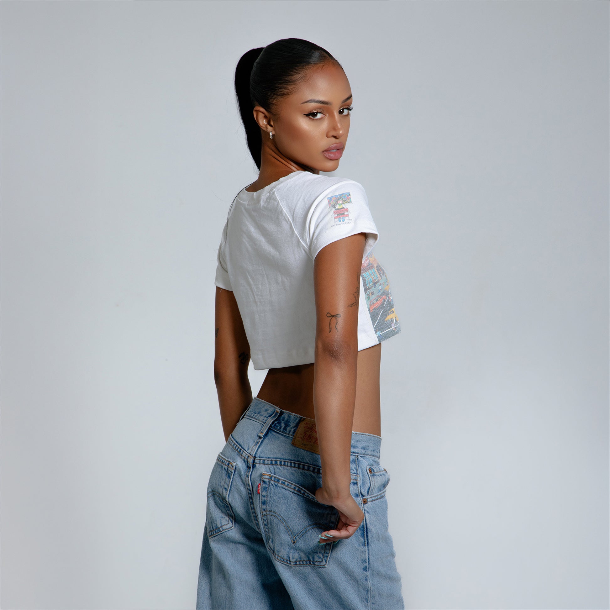 The Essential RW Tee is cut from hand sourced salvaged tees, laundered and reworked into a cropped raglan silhouette that falls just above the waist. Finished with a classic crew neckline, it’s a refined essential that carries the past into the present.