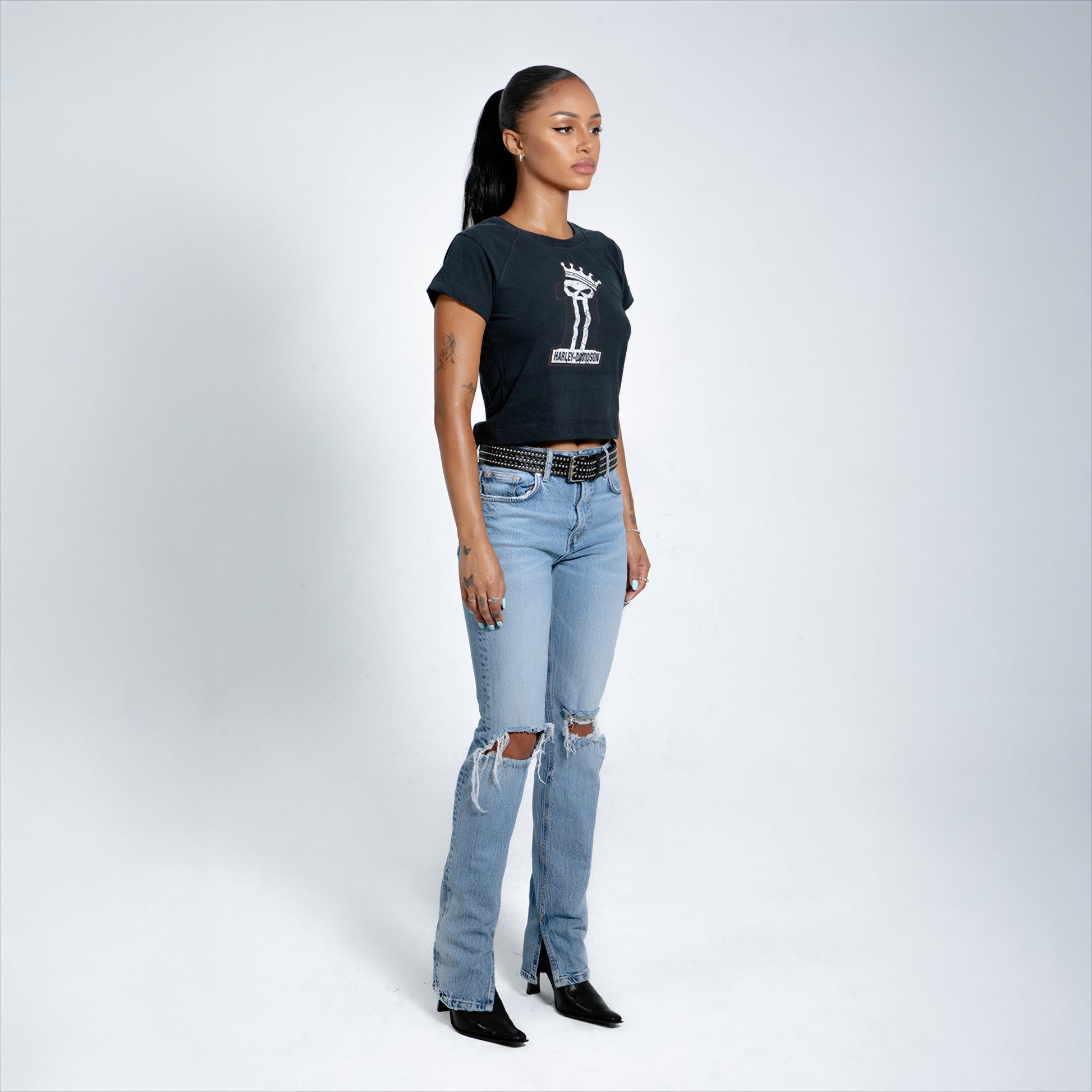 The Essential RW Tee is cut from hand sourced salvaged tees, laundered and reworked into a cropped raglan silhouette that falls just above the waist. Finished with a classic crew neckline, it’s a refined essential that carries the past into the present.